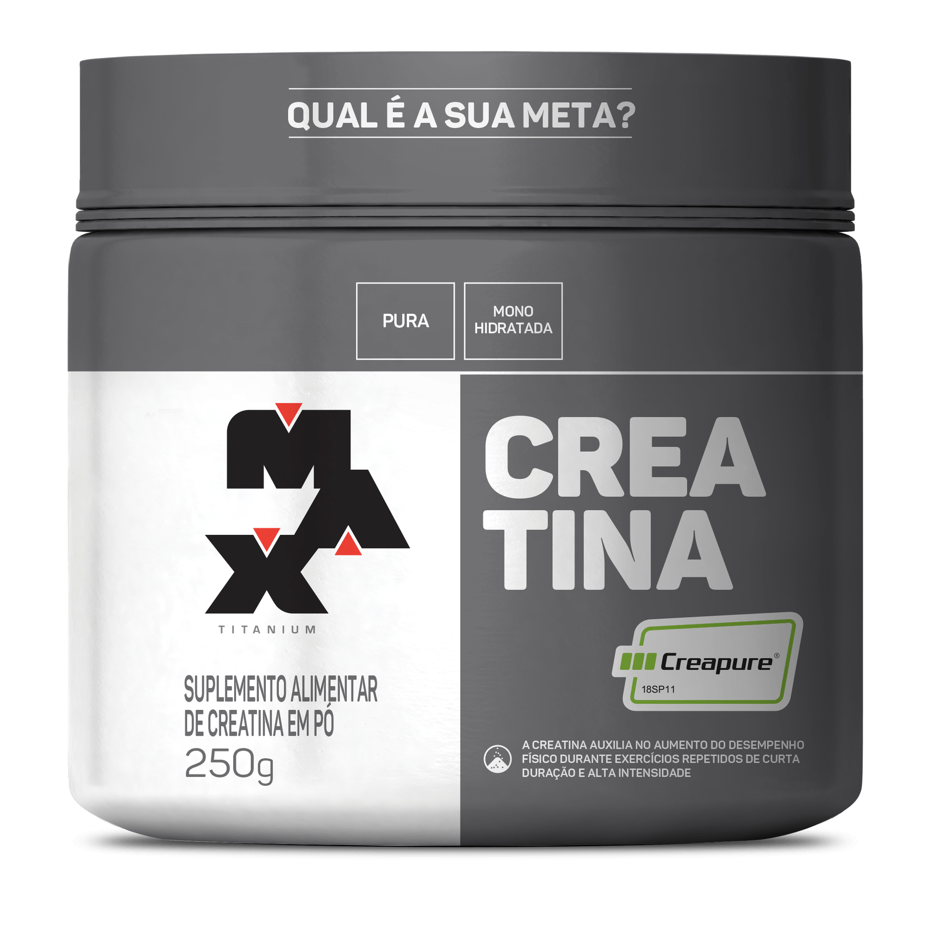 Este produto da Max Titanium, traz a creatina na concentração e pureza da exclusiva tecnologia alemã Creapure®.