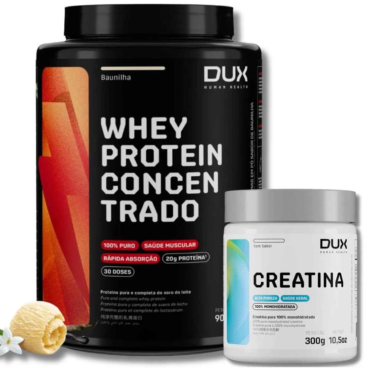 O combo ideal para evolução em força, recuperação e massa muscular com sabor irresistível no whey. O Whey Protein Concentrado oferece sabor baunilha cremosa, ótima solubilidade e digestibilidade para rotinas intensas. A Creatina Monohidratada 100% pura e sem sabor eleva o kit, impulsionando força, potência e energia via ressíntese de ATP — perfeita sinergia para resultados visíveis, com maior rendimento na creatina.